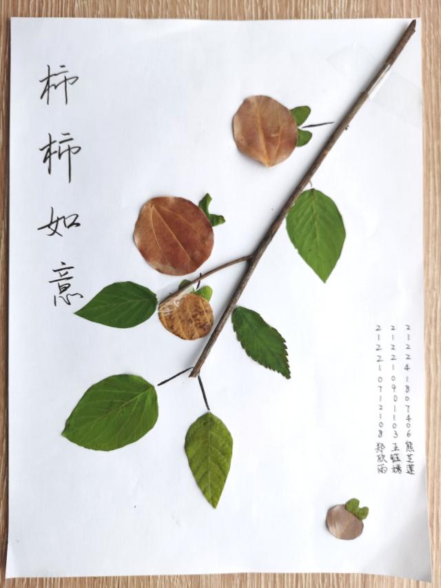 上图是陈前程等三位同学带来的作品,他们收集四时之叶,代表江科大老师们的四季陪伴,“落红不是无情物,化作春泥更护花”,表达了对老师们的感激和感谢之情。