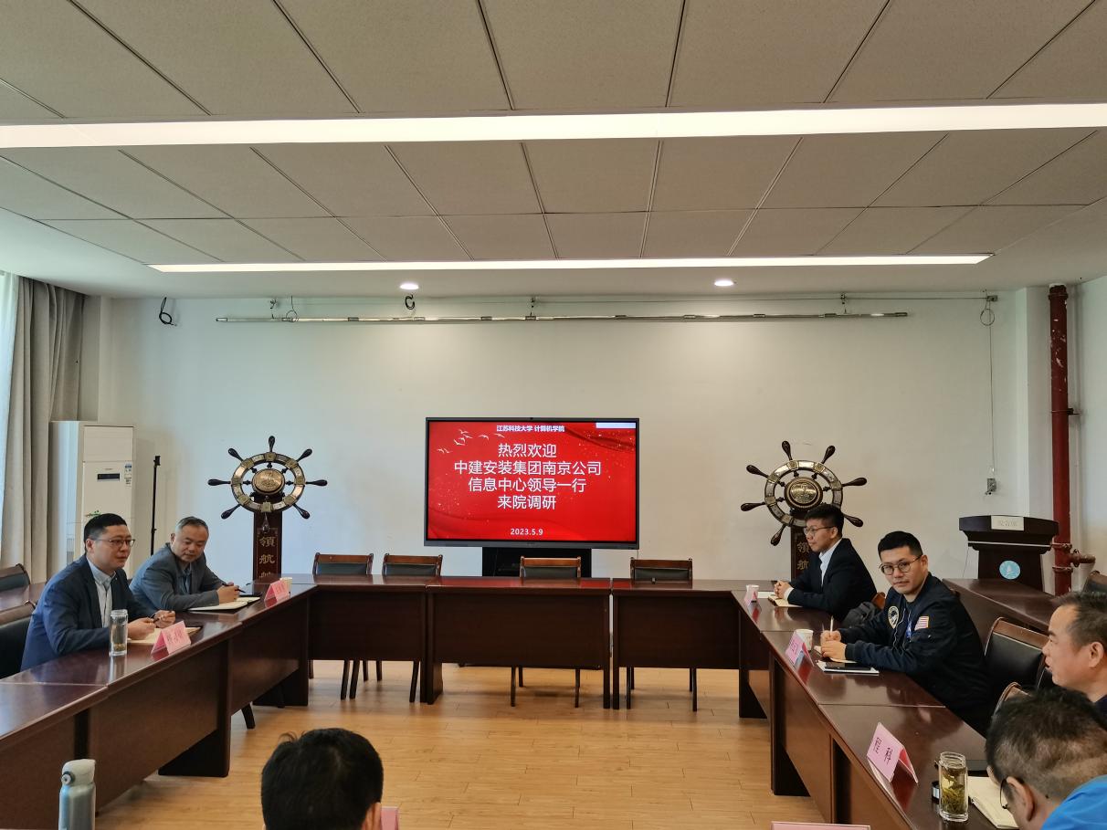 2023年5月9日上午10点,中建安装集团南京公司数字信息中心信息化部经理孙云飞、工程师暨我校校友孙嘉骏莅临188金宝搏官方网址楼320会议室,与校科学技术研究院产学研合作处处长王庆丰、校创新创业学院副院长程科、188金宝搏官方网址院长杨习贝、188金宝搏官方网址部分系主任和科研团队骨干教师见面交流,洽谈合作。杨习贝对中建安装集团南京公司数字信息中心与校内两大职能部门领导表示热烈欢迎,对学院发展的关心表示衷心感谢。
