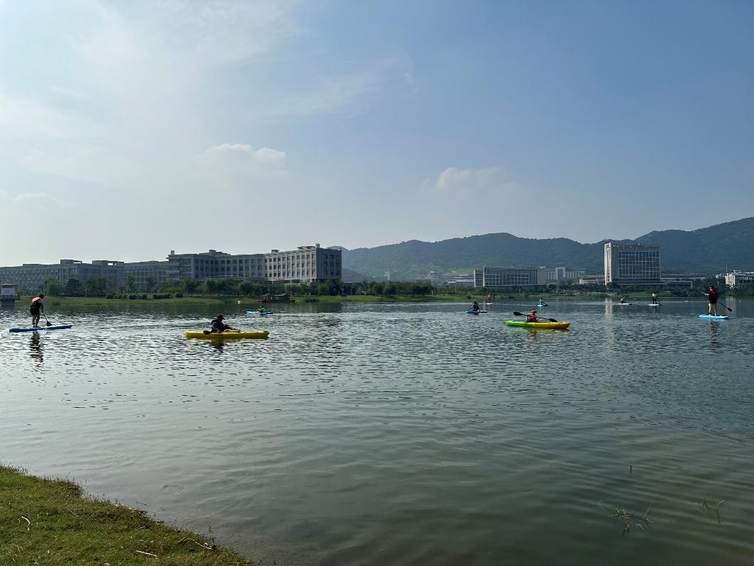 下午15:00,活动在海韵湖的碧波中拉开帷幕。阳光洒在湖面上,湖水泛起晶莹剔透的波纹,与参与活动的教职工们融为一体。学院工会精心安排了皮划艇和浆板两种水上运动项目,让每个教职工都能找到自己喜爱的方式来畅享水上乐趣。