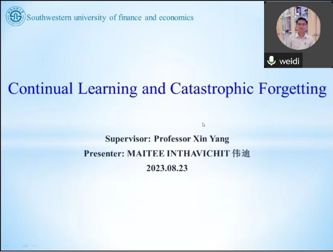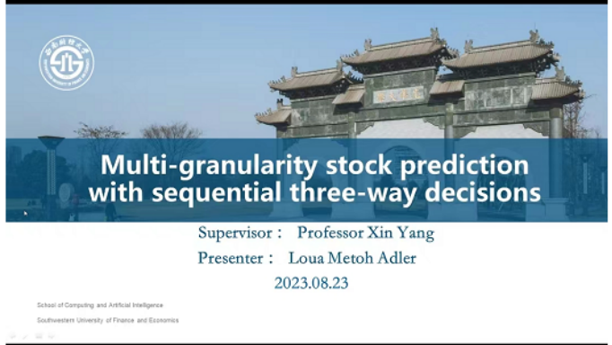 此外,来自于老挝与科特迪瓦的博士生Maitee Inthavichit与Loua Metoh Adler也作了精彩的研讨会报告,分别题为“Continual Learning and Catastrophic Forgetting”,“Multi-granularity Stock Prediction with Sequential Three-way Decisions”。