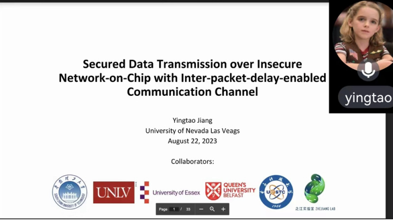 美国Nevada大学Yingtao Jiang教授作了题为“Secured Data Transmission over Insecure Network-on-Chip with Inter-packet Delay-enabled Communication Channel”的研讨会报告,介绍了一种安全数据传输方法,加强了智能信息处理过程中安全性。