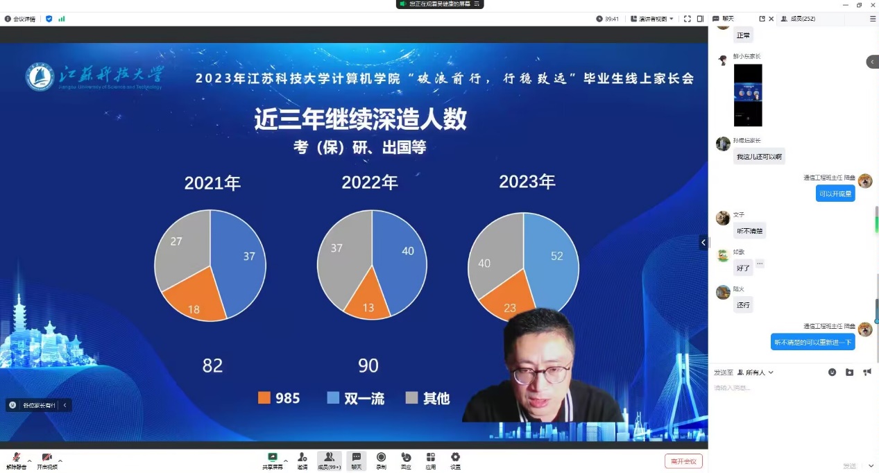 为了进一步加强家校联动,贯彻我校2024届毕业生就业工作指示精神,精准助力2024届学生高质量就业。9月20日,188金宝搏官方网址在线上举办“破浪前行,行稳致远”2024届毕业生家长会。2020级全体学生家长及各专业班主任,共280余人参加会议。会议由党委副书记吴健康主持。