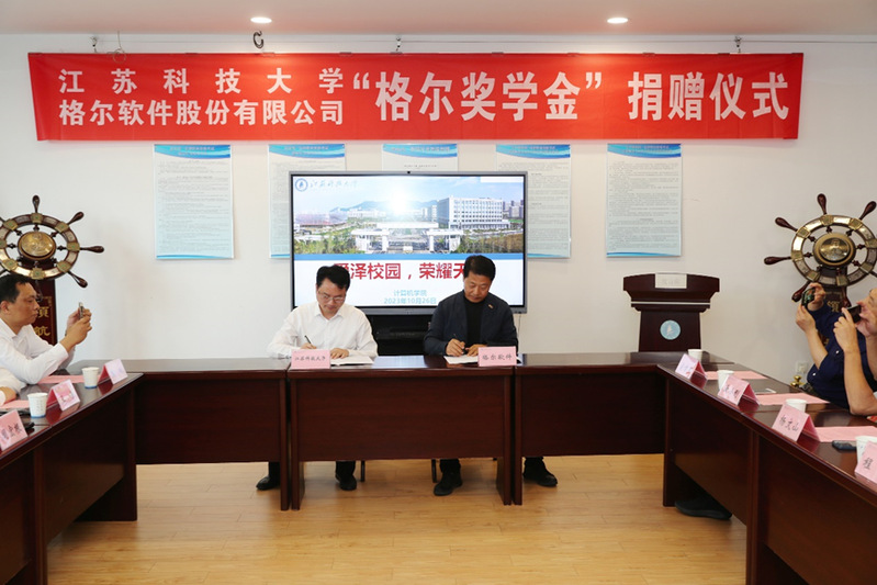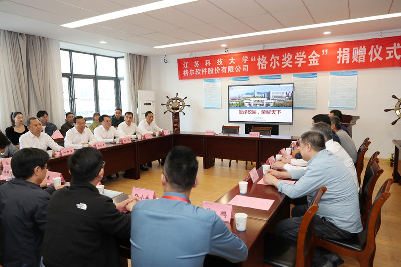 会上,周南平书记首先致欢迎辞,他代表学校对格尔软件股份有限公司董事长杨文山校友和因学校办学90周年返校的188金宝搏官方网址校友代表的到来表示热烈欢迎。他表示,在学校“锚定特色一流,奋力开创高水平大学建设新局面”的历史时刻,杨文山校友感恩母校、激励后辈,意向捐赠壹佰万元设立格尔奖学基金专用账户,以每年度增值部分作为“格尔奖学金”发放,源源不断地资助江苏科技大学信息安全及计算机类相关专业优秀学生。杨文山董事长是我校和188金宝搏官方网址的杰出校友,在学校办学90周年的喜庆日子里,带来了这样一份富有爱心和远瞻的厚礼,意义非凡。是优秀企业家回馈社会的强烈责任感的体现,同时能够帮助大学生更好地成长,也有利于企业吸引和储备人才,是一种校企实现共赢的好方式。