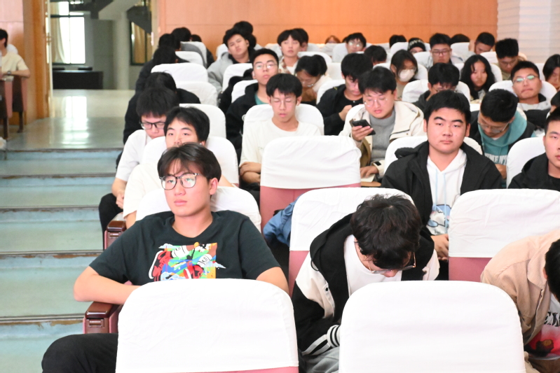在两位主讲人精彩分享结束后,主持人张威老师深受触动,有感而发。他强调,竞赛意义重大,不仅能锻炼个人的创新思维和团队协作能力,还能为同学们日后的考研深造和就业发展奠定坚实基础,所以同学们应以长远眼光看待学习过程。此外,他还传达了一则消息,即学院后续将陆续开展在校优秀学子、毕业优秀学子的成长经验分享会。同时,张威老师进一步阐述了学院举办这一系列新生转型教育讲座的重要意义,让同学们更深刻地理解这些活动对自身发展的积极影响。