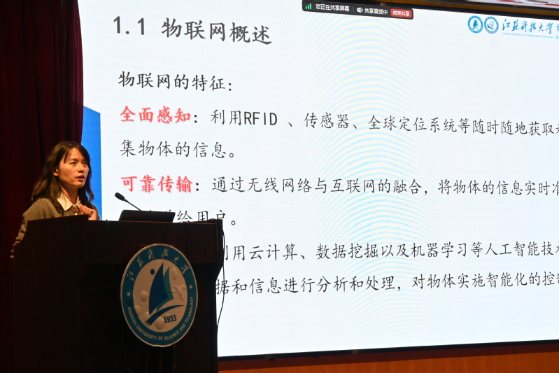 徐丹老师教学经验丰富、专业素养扎实,其讲课风格风趣幽默且感染力十足。讲座开始,徐老师从专业概述切入,极大地激发了同学们对物联网专业的热情,使他们对该专业产生了浓厚兴趣和深入探究的渴望。随后,徐老师详细介绍了培养方案与课程体系、专业建设、就业与升学等重要内容。在课程体系方面,她对通识教育、学科基础、专业课程、集中实践环节和第二课堂等课程设置内容进行了详细阐述。其中,专业课程的设置层次清晰,充分展现了课程的内在逻辑。同时,徐老师还分享了学院在专业发展、师资力量和学科竞赛方面所取得的卓越成果。值得一提的是,物联网专业作为学院的新兴专业,已经建立了相对完善的课程体系,这些成果凝聚着学院老师们的心血和物联网专业同学们的努力,体现出良好的师生共建氛围。最后,徐老师着重介绍了就业和升学方向以及主要就业单位和岗位等关键信息。她强调,同学们需提前了解就业市场情况,尽早做好规划,并依据实际情况适时调整。毕竟,就业与升学等发展目标虽并非遥不可及,但也不能抱有“车到山前必有路”的消极心态,而应积极行动。