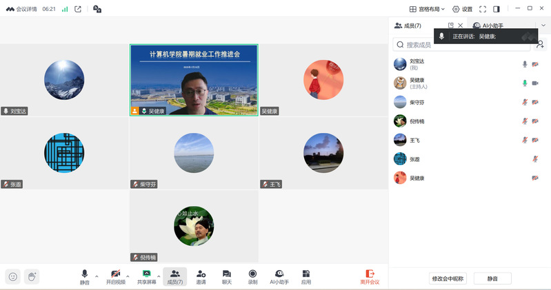 会议围绕当前就业形势、学院就业工作进展及暑期重点任务展开。吴健康首先传达了学校关于就业工作的最新要求,分析了计算机专业学生的就业特点及面临的挑战。他强调,就业工作是学院人才培养的重要环节,全体班主任和辅导员要高度重视,充分利用暑期关键期,精准摸排学生就业动态,分类指导、重点帮扶,确保2025届毕业生高质量就业。