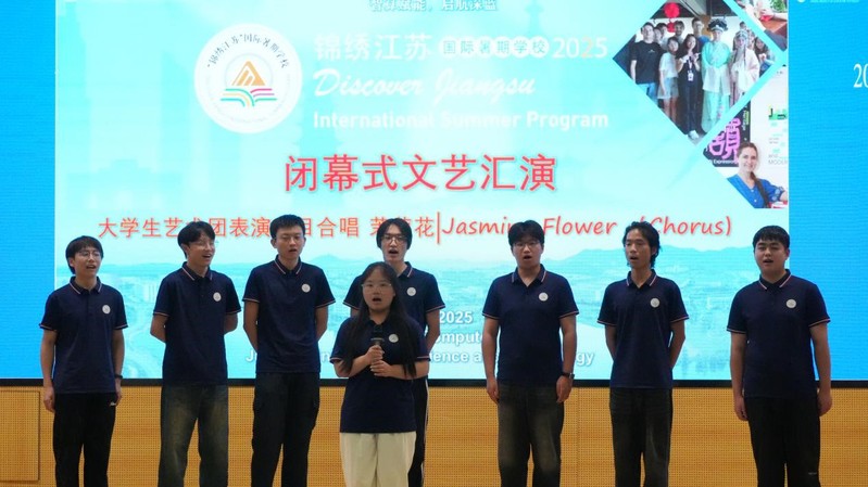 当文艺汇演的压轴节目合唱《茉莉花》响起,观众们不禁沉浸在这美好的乐声之中。“好一朵茉莉花,好一朵茉莉花,芬芳美丽满枝桠,又白又香人人夸......”优美的歌声化作一声声的祝愿,祝愿参加本次“锦绣江苏”国际暑期学校的学员们能将这一份满含芬芳的友谊之花带回故乡,让水韵江苏的好客之情随着这一缕茉莉花的芬芳洒遍世界。