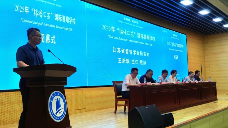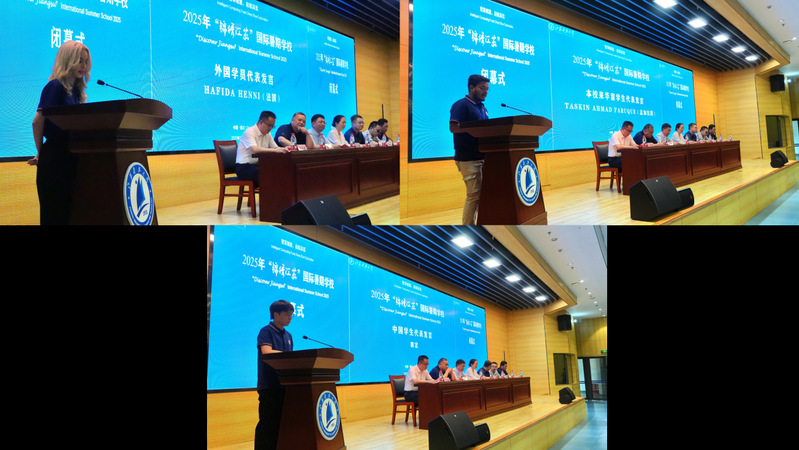 江苏科技大学党委常委、副校长任南为江苏科技大学2025年“锦绣江苏”国际暑期学校闭幕式致闭幕辞。任南副校长在致辞中首先回顾了本次国际暑期学校“智算赋能,启航深蓝”的主题,期望中外学员们能够在探索人工智能前沿科技知识和沉浸式感受镇江文化魅力后留下美好的回忆,用回忆编辑成增进中外文化交流的精彩代码,更期待每一位学员都能做中国故事的倾听者、传播者和讲述者。